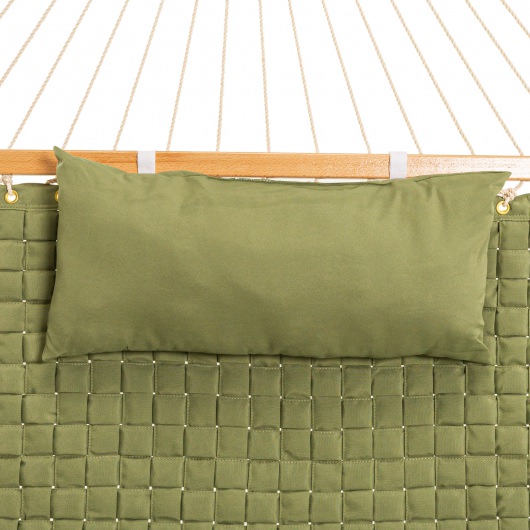 This fabulous green soft weave hammock is part of the Key West Hammocks collection. There is no need to explain why. Just looking at this hammock puts your mind and body at ease. Two ample sheets of all-weather fabric quilted over a plush layer of pillowy polyester fiberfill batting promises a lavish reclining in absolute comfort! The spreader bars are varnished hardwood, that is fancy talk for they are easy on the eyes and durable to boot. The ring knots are made of polyester rope that coordinates perfectly with the hammock bed. This hammock also comes with a matching pillow. The Castaway Living collection offers hammocks in different styles. These hammocks were carefully selected for their looks and the value they offer. The best deal on the web for soft weave hammocks!